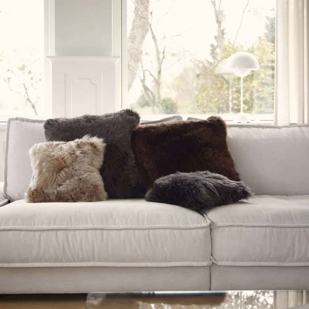 Dieses extragroße Kissen hat einen Bezug aus echtem Lammfell aus Neuseeland. Das Langhaar Lammfell fühlt sich himmlisch weich an und nach einem langen Tag kann man sich kaum etwas Besseres vorstellen, als mit diesem Fellkissen zu kuscheln. Das Fellkissen mit Bezug aus langhaarigem Lammfell hat ein tolles und einzigartiges Aussehen, das sowohl natürliche Eleganz als auch Gemütlichkeit verbreitet. Das Lammfellkissen ist in mehreren Farben erhältlich – von knalligen Trendfarben bis hin zu abgedämpften Tönen, die in jede moderne Einrichtung passen. Das Kissen misst 50×50 cm und eignet sich daher hervorragend als gemütliches Element auf einem Kingsize-Bett. Aber auch auf Sofalandschaften oder in einem großen Sessel wird das Kissen zu gemütlichen Stunden und Entspannung einladen
